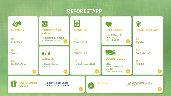 Desarrollo dde la app, reforestación, alianzas.
