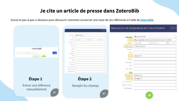 Suivez le pas-à-pas ci-dessous pour découvrir comment conserver une trace de ces références à l'aide de ZoteroBib.