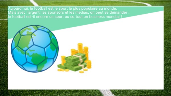 Aujourd’hui, le football est le sport le plus populaire au monde. Mais avec l’argent, les sponsors et les médias, on peut se demander : le football est-il encore un sport ou surtout un business mondial ?
