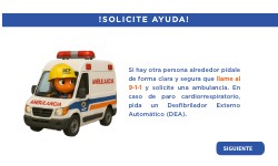 Si hay otra persona alrededor pídale de forma clara y segura que llame al 9-1-1 y solicite una ambulancia. En caso de paro cardiorrespiratorio, pida un Desfibrilador Externo Automático (DEA).