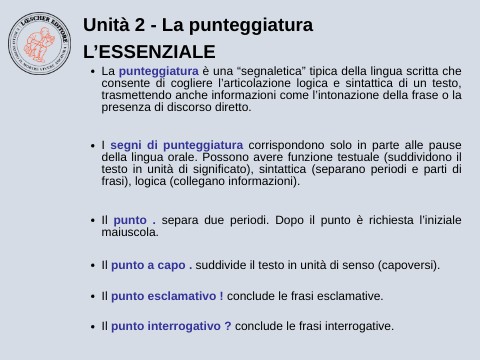 Unità 2 - La punteggiatura L’ESSENZIALE
