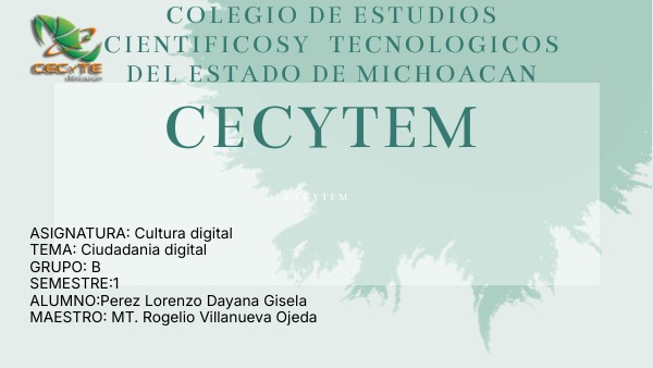 ASIGNATURA: Cultura digital TEMA: Ciudadania digital GRUPO: B SEMESTRE:1 ALUMNO:Perez Lorenzo Dayana Gisela MAESTRO: MT. Rogelio Villanueva Ojeda