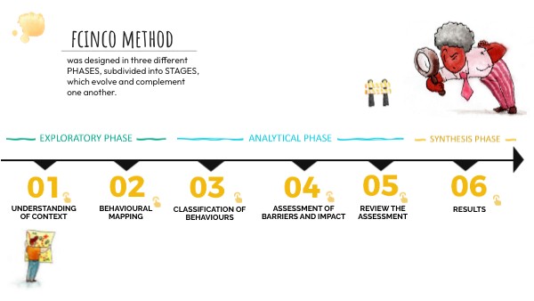 Here begins the Analytical Phase, developed based on the findings from the Behavioural Mapping. This stage aims to record each behaviour in the planned journey and determine the category to which it belongs. Based on this classification, the relevant issues will be selected for the next stage: Assessment of Barriers and Impact.