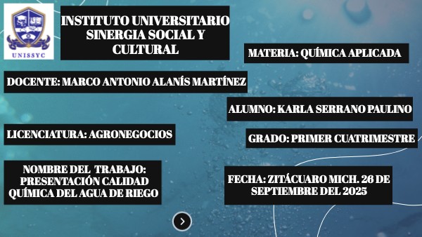 NOMBRE DEL TRABAJO: PRESENTACIÓN CALIDAD QUÍMICA DEL AGUA DE RIEGO