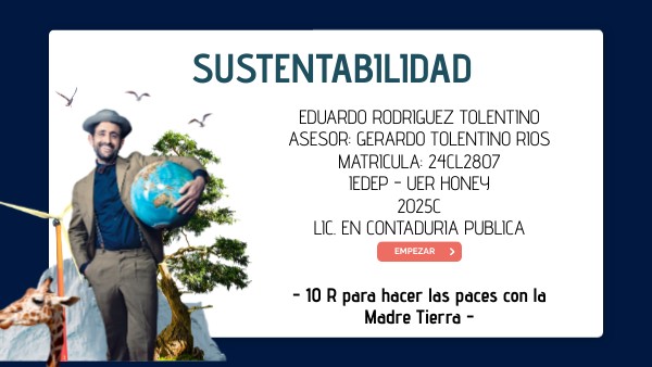EDUARDO RODRIGUEZ TOLENTINOASESOR: GERARDO TOLENTINO RIOSMATRICULA: 24CL2807IEDEP - UER HONEY 2025CLIC. EN CONTADURIA PUBLICA- 10 R para hacer las paces con la Madre Tierra -