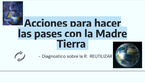 Reducir, Reutilizar, Reciclar, Rechazar, Reforestar, Respetar la vida, Reeducar, Reinventarnos, Redistribuir, Reglamentar.“Reutilizar significa dar una segunda vida a los objetos antes de desecharlos, reduciendo la generación de residuos y aprovechando al máximo los recursos.” !