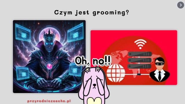 Taki dorosły może udawać kogoś w waszym wieku, być bardzo miły, chwalić was, dawać prezenty w grze albo pytać o wasze sekrety. Celem jest zdobycie zaufania. Niestety później taka osoba może próbować namówić Cię do rzeczy, które są niebezpieczne, na przykład wysyłania zdjęć, filmików czy spotkania na żywo.