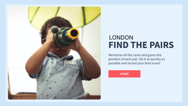 Memorize all the cards and guess the position of each pair. Do it as quickly as possible and record your best score!