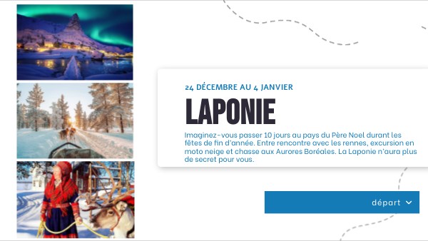 Imaginez-vous passer 10 jours au pays du Père Noel durant les fêtes de fin d’année. Entre rencontre avec les rennes, excursion en moto neige et chasse aux Aurores Boréales. La Laponie n’aura plus de secret pour vous.