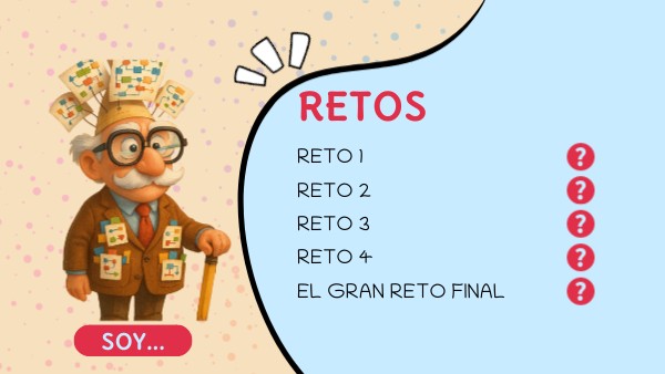 Me llamo Señor Esquema, y soy el Guardián del Conocimiento Ordenado. Mi misión es ayudaros a organizar ideas, clasificar información y pensar con claridad, como verdaderos arquitectos del pensamiento. Con mi americana llena de tarjetas de colores, flechas y conectores, mi sombrero de pensador decorado con diagramas, y mis gafas especiales para ver ideas principales y secundarias, estoy siempre listo para transformar el caos en claridad. Y no olvidéis mi bastón... ¡que en realidad es un lápiz gigante con el que dibujo los mejores esquemas del mundo! Pero hoy no vengo solo a presentarme. Vengo con un reto urgente. Necesito vuestra ayuda: El libro del lenguaje ha perdido sus partes: sujetos desaparecidos, predicados sin verbo, nombres fuera de lugar y conectores desconectados. Si conseguís reconstruir las pistas gramaticales, podréis ayudarme a volver a ordenar el conocimiento y convertiros en Maestros del Lenguaje. Solo hay una forma: crear un gran esquema final que lo explique todo... ¿ESTÁIS PREPARADOS?