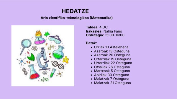 Taldea: 4.DC Irakaslea: Nahia Fano Ordutegia: 15:00-16:00 Datak: