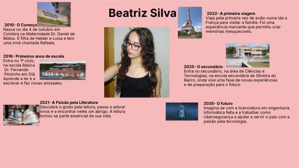 2025- O secundário Entra no secundário, na área de Ciências e Tecnologias, na escola secundária de Oliveira do Bairro, onde vive uma fase de novas experiências e de preparação para o futuro