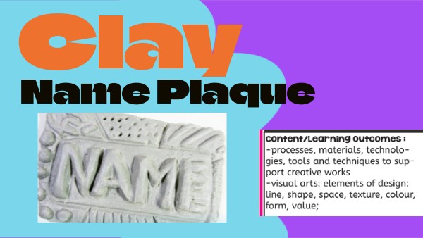 To create a name plaque out of clay using tools and learning new techniques in clay construction.