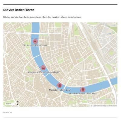 Die Klingental-Fähre verbindet den Totentanz (benannt nach einem nicht mehr existierenden mittelalterlichen Wandgemälde) mit dem Klingental, wo sich das Kasernenareal befindet. Die Fährverbindung wurde 1862 eröffnet, ist also die zweitälteste. Der Vogel Gryff ist eines der Ehrenzeichen der drei Kleinbasler Ehrengesellschaften. Am Vogel Gryff-Tag tanzt die heraldische Figur gemeinsam mit dem Wilden Maa und dem Leu auf der Mittleren Brücke.