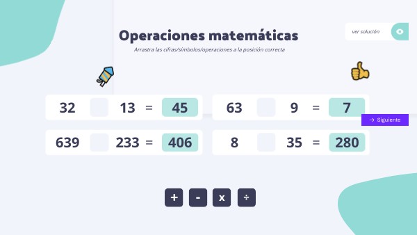 Arrastra las cifras/símbolos/operaciones a la posición correcta