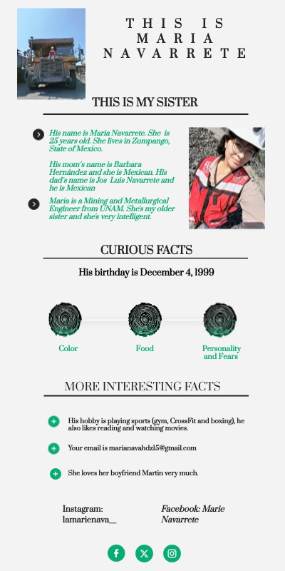 Maria is a Mining and Metallurgical Engineer from UNAM. She's my older sister and she's very intelligent.