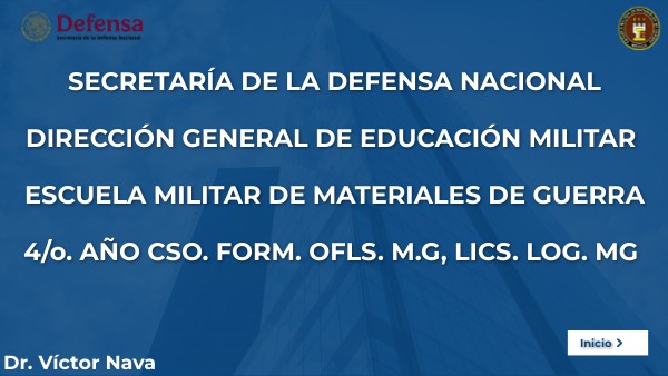 SECRETARÍA DE LA DEFENSA NACIONAL DIRECCIÓN GENERAL DE EDUCACIÓN MILITAR ESCUELA MILITAR DE MATERIALES DE GUERRA 4/o. AÑO CSO. FORM. OFLS. M.G, LICS. LOG. MG