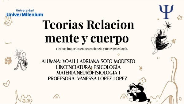 ALUMNA: YOALLI ADRIANA SOTO MODESTO LINCENCIATURA: PSICOLOGÍA MATERIA:NEUROFISIOLOGIA I PROFESORA: VANESSA LOPEZ LOPEZ