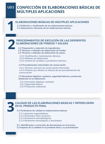 2.1 Preparación y selección de ingredientes 2.2 Técnicas y métodos de elaboración de fondos 2.3 Técnicas y métodos de elaboración de salsas