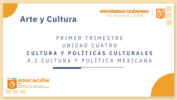 Primer trimestre Unidad CUATRO Cultura y políticas culturales 4.1 CULTURA Y POLÍTICA MEXICANA