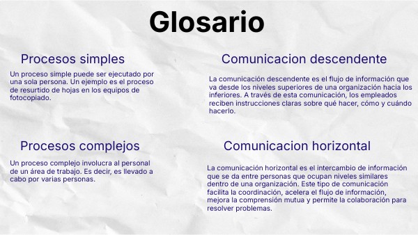 Un proceso complejo involucra al personal de un área de trabajo. Es decir, es llevado a cabo por varias personas.