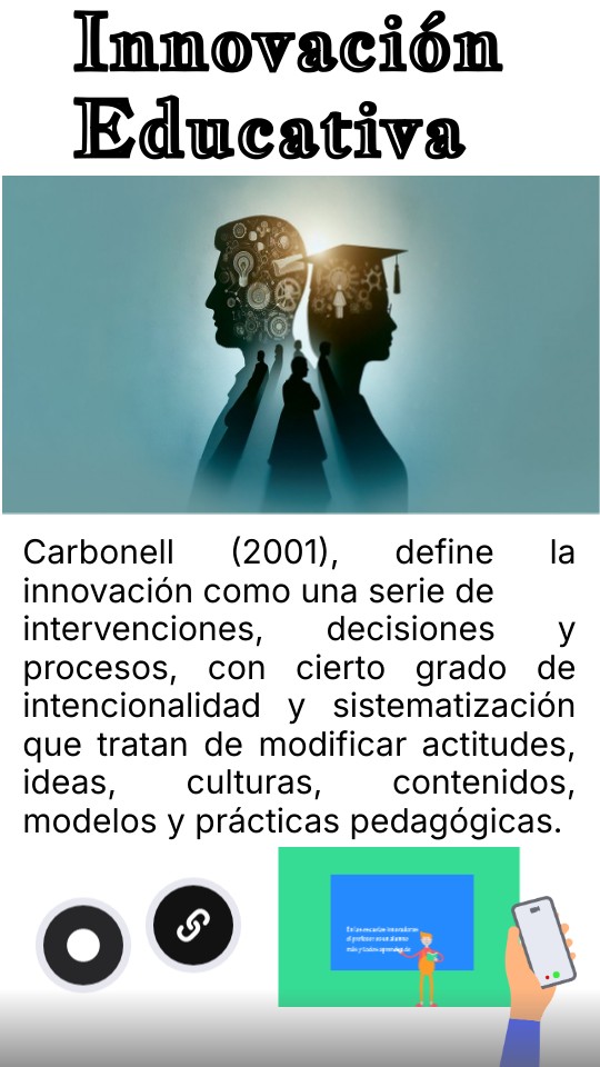 Carbonell (2001), define la innovación como una serie de intervenciones, decisiones y procesos, con cierto grado de intencionalidad y sistematización que tratan de modificar actitudes, ideas, culturas, contenidos, modelos y prácticas pedagógicas.
