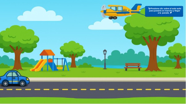 ✨Presiona clic sobre el auto auto para ponerlo en marcha y llegar a la parada 📍