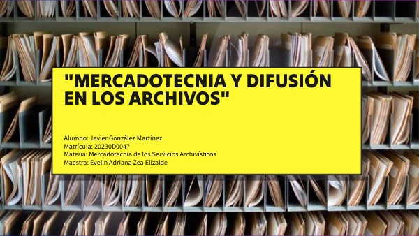 Alumno: Javier González Martínez Matrícula: 20230D0047 Materia: Mercadotecnia de los Servicios Archivísticos Maestra: Evelin Adriana Zea Elizalde