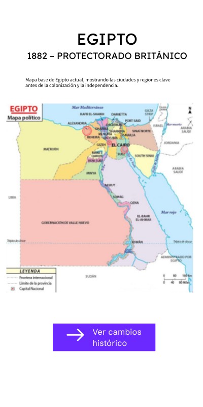 Mapa base de Egipto actual, mostrando las ciudades y regiones clave antes de la colonización y la independencia.