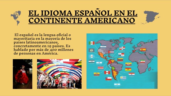 El español es la lengua oficial o mayoritaria en la mayoría de los países latinoamericanos, concretamente en 19 países. Es hablado por más de 400 millones de personas en América.