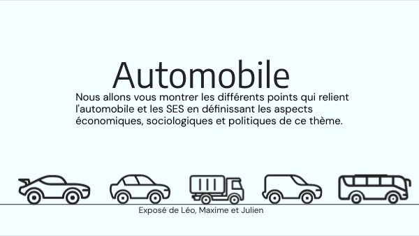 Nous allons vous montrer les différents points qui relient l'automobile et les SES en définissant les aspects économiques, sociologiques et politiques de ce thème.