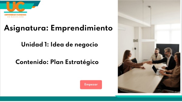En esta presentación exploraremos los fundamentos del emprendimiento, centrándonos en cómo surge una idea de negocio y qué elementos permiten evaluar su viabilidad. A lo largo de esta unidad, conoceremos el papel del plan estratégico como herramienta clave para transformar una idea en una propuesta sólida y ejecutable. Nos adentraremos en conceptos esenciales, analizaremos ejemplos reales y aplicaremos métodos prácticos que ayudarán a visualizar el potencial de una idea emprendedora. Prepárense para descubrir cómo una simple idea puede convertirse en un proyecto exitoso. ¡Comencemos este recorrido hacia el emprendimiento!