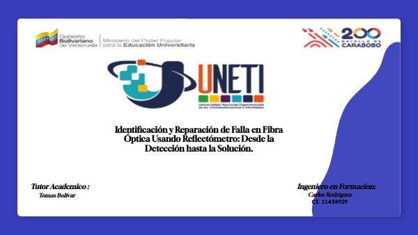INTRODUCCIÓN La fibra óptica se ha consolidado como la principal tecnología para la transmisión de datos en las telecomunicaciones modernas, debido a su alta velocidad, gran capacidad de transporte y baja atenuación en largas distancias. Sin embargo, esta infraestructura no está exenta de fallas, ya que puede verse afectada por cortes accidentales, empalmes defectuosos o pérdidas de señal por atenuaciones. En este contexto, mis prácticas profesionales se centraron en aprender a diagnosticar y reparar estas fallas mediante el uso de equipos especializados, principalmente el Reflectómetro Óptico en el Dominio del Tiempo (OTDR). Esta herramienta permitió identificar la ubicación y naturaleza de los eventos en la fibra, mientras que la práctica de empalme y manipulación adecuada de las herramientas, me brindó la experiencia necesaria para aplicar soluciones efectivas y garantizar la continuidad del servicio.