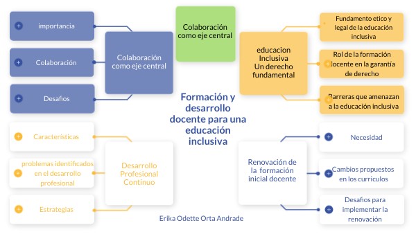 Importancia de la Colaboración en la Educación InclusivaDefinición: La colaboración se refiere al trabajo conjunto entre docentes, especialistas, familias y comunidades educativas para diseñar e implementar prácticas inclusivas que atiendan la diversidad de los estudiantes. Cita clave (p. 65): La educación inclusiva requiere “un trabajo colaborativo que integrese diferentes actores para responder a las necesidades de todos los alumnos” Relevancia: Es un pilar fundamental para superar las limitaciones de la formación docente tradicional, promoviendo entornos equitativos y garantizando el derecho a la educación para todos.