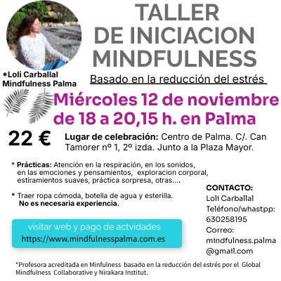 CONTACTO: Loli Carballal Teléfono/whastpp: 630258195 Correo: mindfulness.palma @gmail.com
