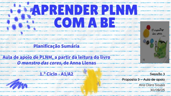 Planificação SumáriaAula de apoio de PLNM, a partir da leitura do livro O monstro das cores, de Anna Llenas1.º Ciclo - A1/A2