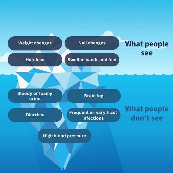 Kidney disease can lead to hair loss, which may be a very visible and worrying symptom.