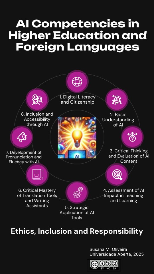 The use of AI assistants for writing and translation can provide valuable support in language learning contexts, particularly in courses such as Practice of Translation: Foreign Language–Portuguese. This competency enables students to understand both the potential and the limitations of such tools, assessing the adequacy of machine translations and identifying cultural or contextual biases and errors, while maintaining personal critical thinking and the linguistic and conceptual accuracy required in academic contexts. Its development prepares students to integrate AI productively into their academic and professional paths, in line with good practices of writing and citation. As highlighted in UNESCO’s Guidance (13), it is essential to recognise that these systems cannot replace critical thinking or individual responsibility in the processes of reflection, writing, and translation. Recent research in translation pedagogy confirms the importance of AI literacy, since AI-generated translation proposals may appear acceptable at first glance but often fail in terminological accuracy, discursive register, or intercultural coherence. Students must therefore be fully aware of their limitations and ethical implications (Zhang and Doherty 2025).