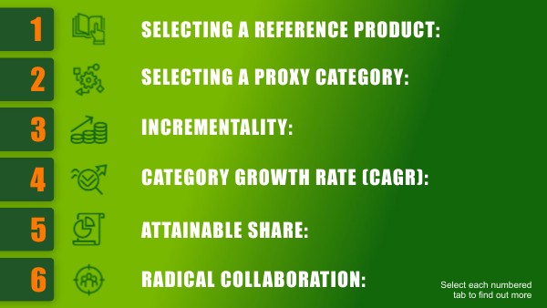 Use external market data (e.g. Global Data or IWSR) and internal insights to estimate the category's future growth.
