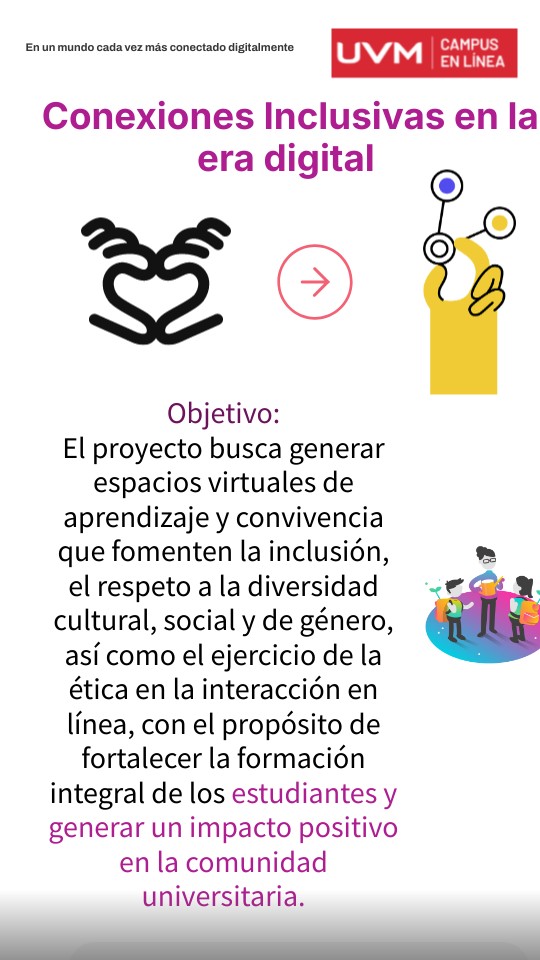 Objetivo:El proyecto busca generar espacios virtuales de aprendizaje y convivencia que fomenten la inclusión, el respeto a la diversidad cultural, social y de género, así como el ejercicio de la ética en la interacción en línea, con el propósito de fortalecer la formación integral de los estudiantes y generar un impacto positivo en la comunidad universitaria.