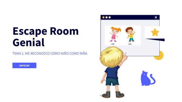 🌟 ¡Bienvenidos al Escape Room! 🌟 Hola, niños y niñas. Hoy vamos a jugar a un Escape Room muy divertido. En este juego aprenderemos más sobre nosotros mismos, sobre quiénes somos, cómo nos llamamos, qué cosas nos gustan y cómo podemos reconocernos como niños o como niñas. Para lograrlo, tendrán que ir resolviendo retos y pruebas mágicas que aparecen en la pantalla. Cada reto les dará una pista que los ayudará a seguir avanzando hasta llegar a la salida. 🕹️ Instrucciones: Escucha con atención lo que diga la maestra o el adulto que te acompaña. Observa bien las imágenes y pistas que aparecen en el juego. Responde o elige la opción correcta para poder pasar al siguiente nivel. Si te equivocas, no pasa nada: intenta otra vez. Trabaja en equipo con tus compañeros y ayúdense entre todos. 🎯 Objetivo del juego: Superar todos los retos para descubrir lo especial que eres y reconocerte como niño o niña, celebrando lo que te hace único y valioso.