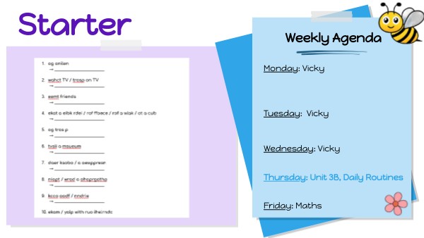 Thursday: Unit 3B, Daily Routines