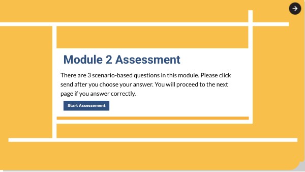 There are 3 scenario-based questions in this module. Please click send after you choose your answer. You will proceed to the next page if you answer correctly.