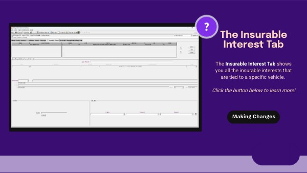 The Insurable Interest Tab shows you all the insurable interests that are tied to a specific vehicle. Click the button below to learn more!
