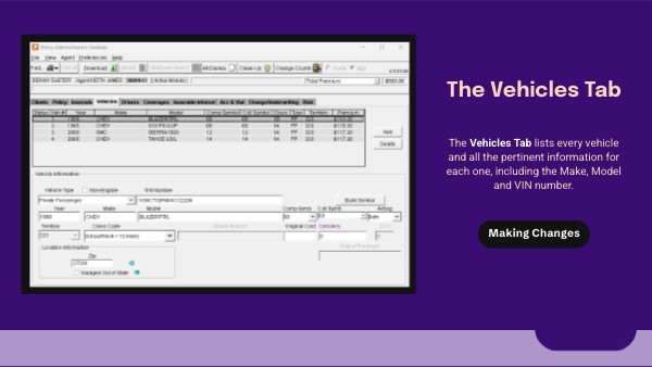 The Vehicles Tab lists every vehicle and all the pertinent information for each one, including the Make, Model and VIN number.