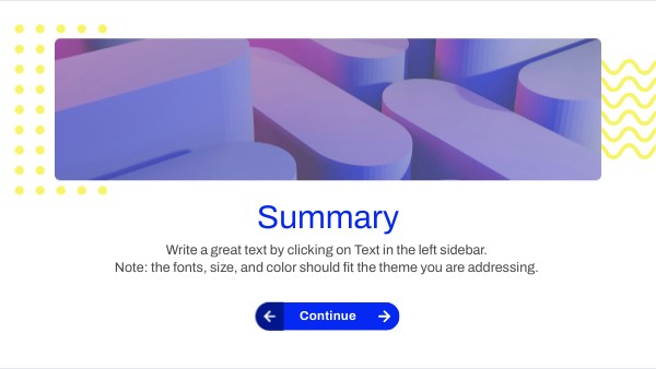 Write a great text by clicking on Text in the left sidebar. Note: the fonts, size, and color should fit the theme you are addressing.