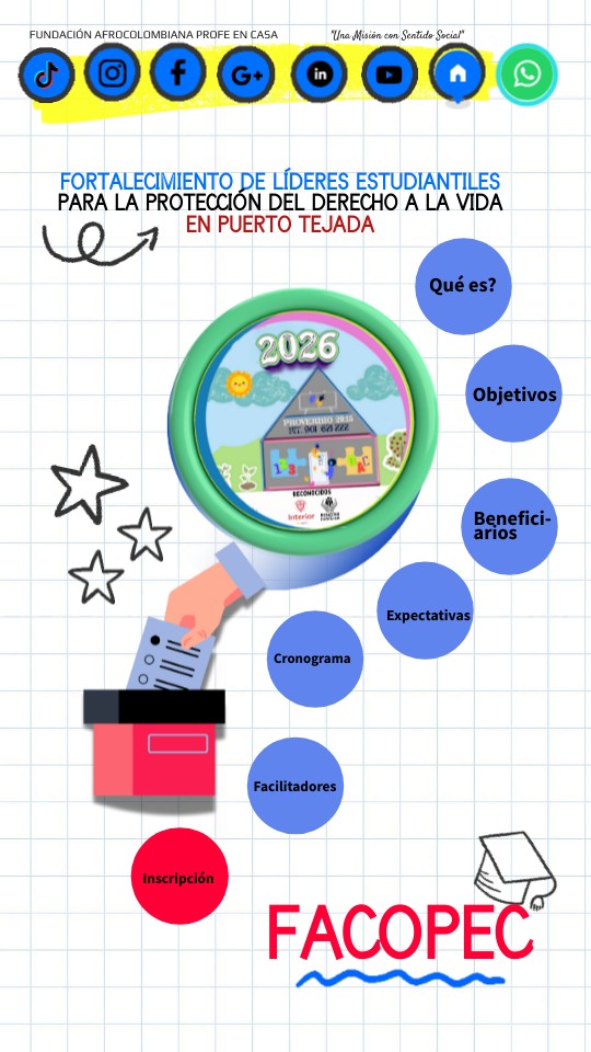 En respuesta a la convocatoria "Banco de Iniciativas Para las Comunidades de la Dirección de Derechos Humanos Ciclo I -2024". La Fundación Afrocolombiana Profe en Casa se postuló a la "Línea 6: Protección y autoprotección del derecho a la vida" El proyecto "Fortalecimiento de Líderes Estudiantiles para la Protección del Derecho a la Vida en Puerto Tejada" tiene como objetivo principal capacitar a personeros estudiantiles y jóvenes líderes del territorio.