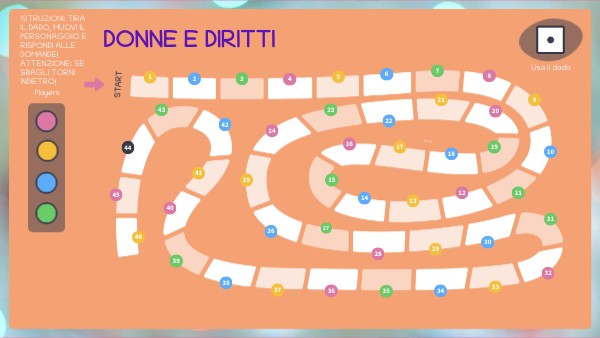 iSTRUZIONI: TIRA IL DADO, MUOVI IL PERSONAGGIO E RISPONDI ALLE DOMANDE! ATTENZIONE: SE SBAGLI TORNI INDIETRO!