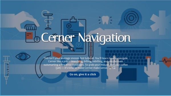 This isn’t your average snooze-fest tutorial. You’ll learn how to navigate Cerner like a pro — searching, billing, rebilling, and maybe even outsmarting a few error messages. So grab your mouse, not your coffee (yet) — it’s time to make Cerner make sense. 🖥️💡