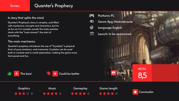Quanter's prophecy introduces the use of "Crystalse" a physical form of pure emotions, and memories. Crystalse can be used both in combat and in world exploration, making the game more fast paced and fun.